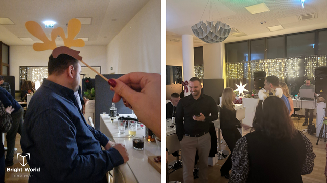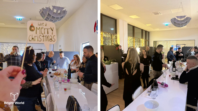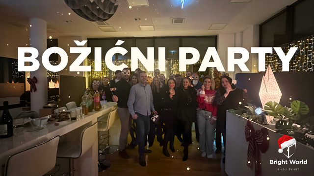Petak 12. prosinca donio je potpuno drugačiju energiju u ured. Blagdanske dekoracije bile su već tjednima postavljene, ali tek su te večeri stvarno došle do izražaja. Kako su se ljudi okupljali i glazba počela ispunjavati prostor, ured je živnuo brže nego što smo očekivali. Svjetla su treperila u ritmu razgovora, a prostor koji svakodnevno poznajemo iz svoje radne verzije pretvorio se u mjesto puno smijeha, kretanja i dobre atmosfere.
