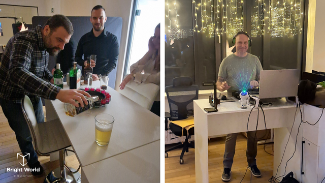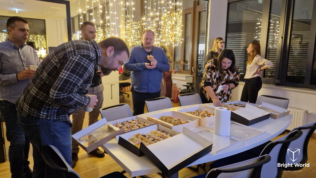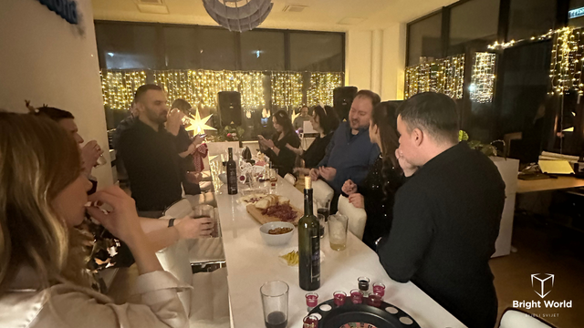 Petak 12. prosinca donio je potpuno drugačiju energiju u ured. Blagdanske dekoracije bile su već tjednima postavljene, ali tek su te večeri stvarno došle do izražaja. Kako su se ljudi okupljali i glazba počela ispunjavati prostor, ured je živnuo brže nego što smo očekivali. Svjetla su treperila u ritmu razgovora, a prostor koji svakodnevno poznajemo iz svoje radne verzije pretvorio se u mjesto puno smijeha, kretanja i dobre atmosfere.